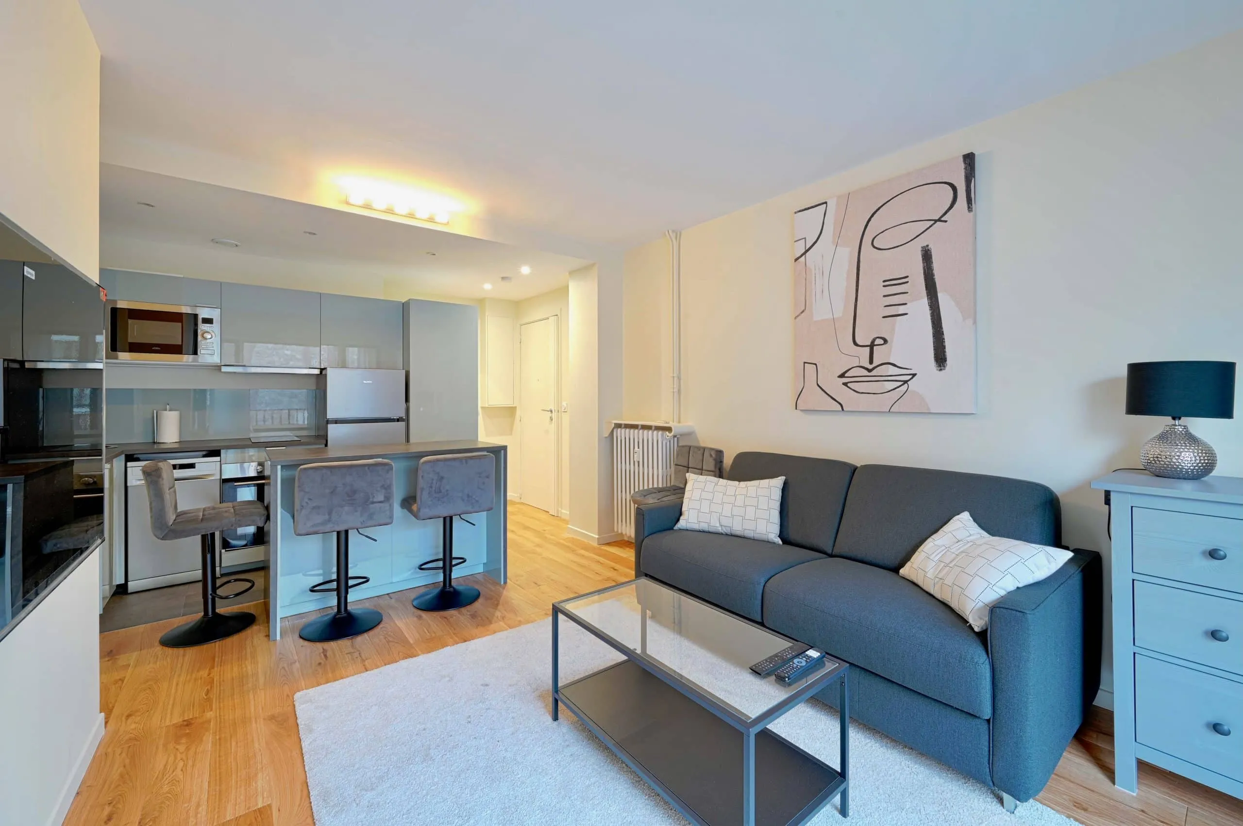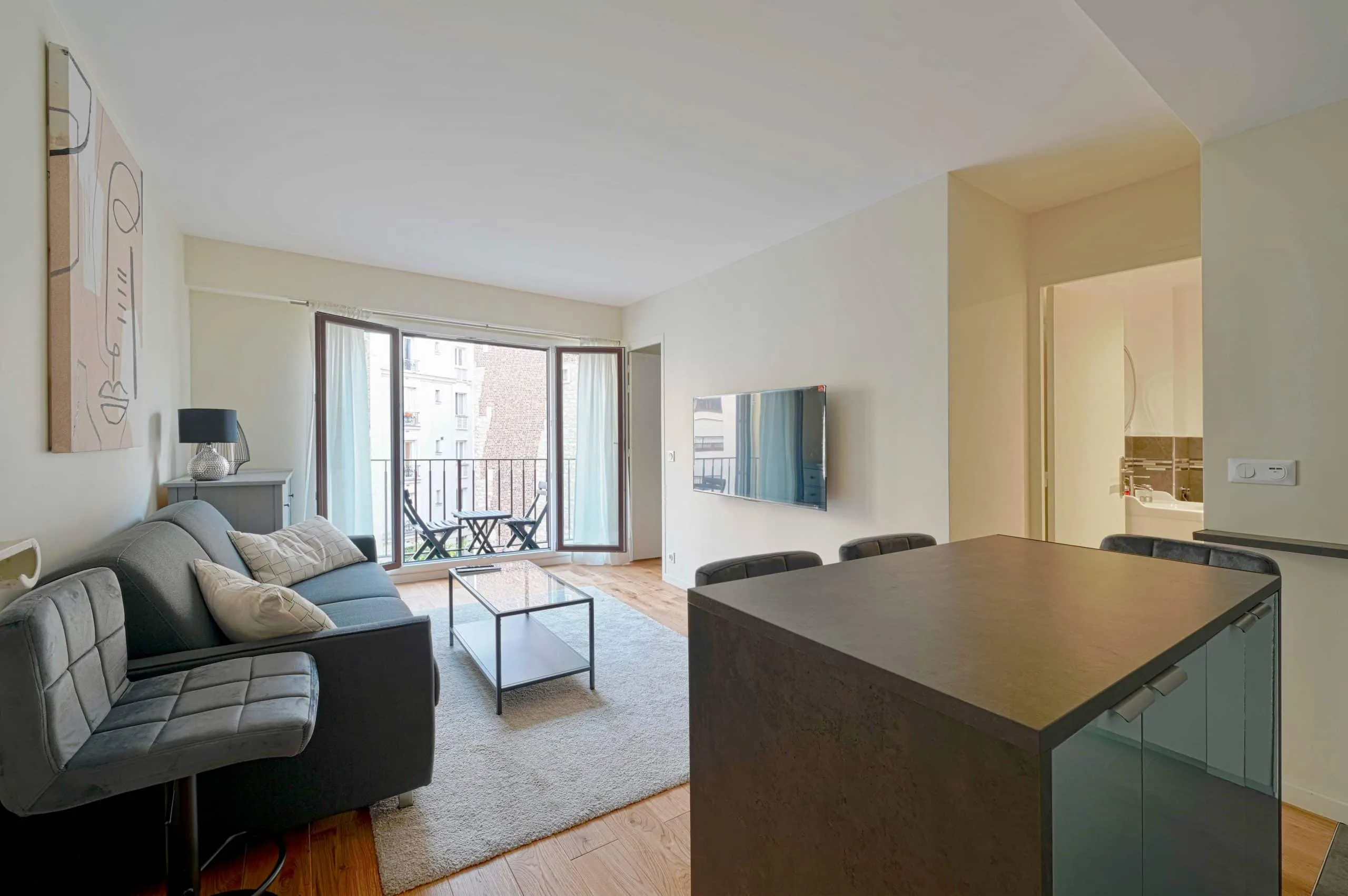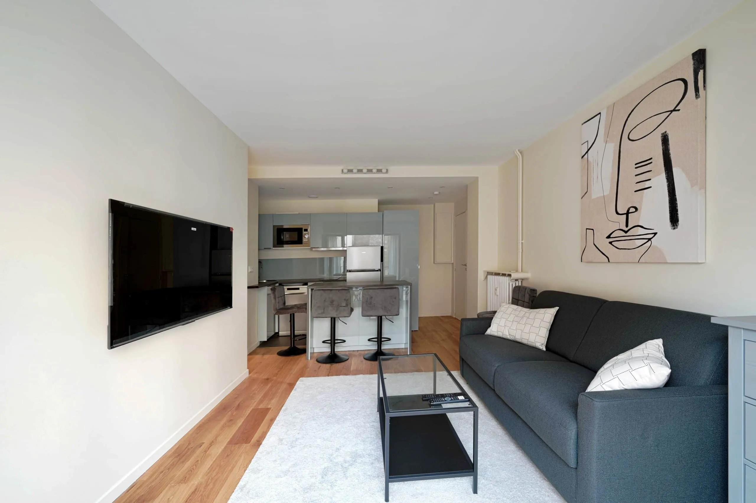 Le salon paraît aujourd’hui plus spacieux et lumineux. Les circulations sont plus fluides et naturelles. L’ensemble du projet transforme l’appartement en un espace fonctionnel et harmonieux.